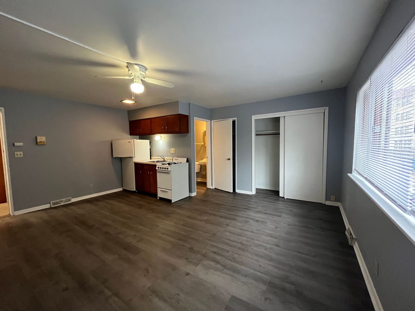 First floor unit with laminate flooring. Cats allowed at an additional fee! Parking is available on the street through the city of Milwaukee or at our nearby parking lot.